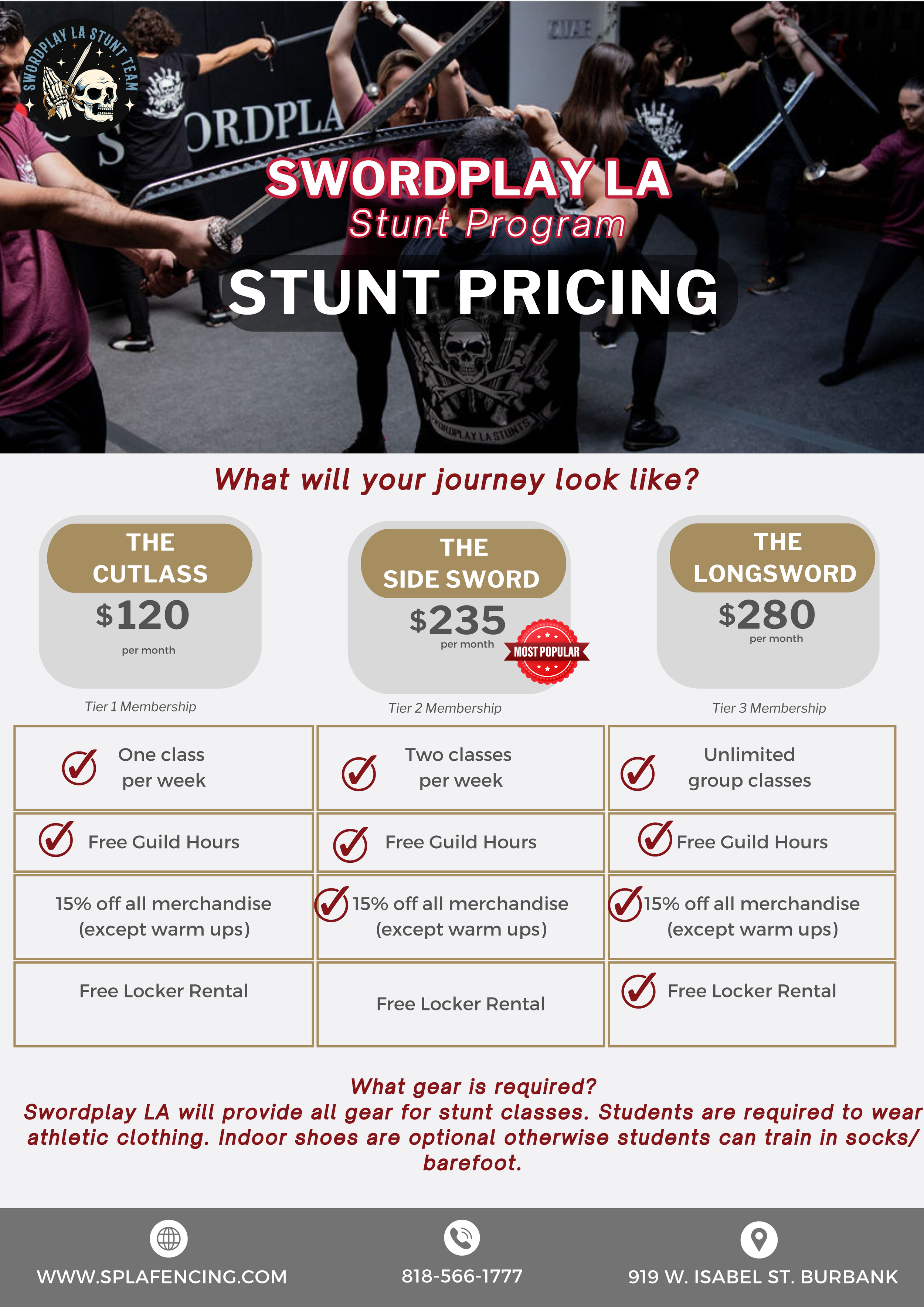 Swordplay LA is not responsible for any equipment that may be left in the space overnight.